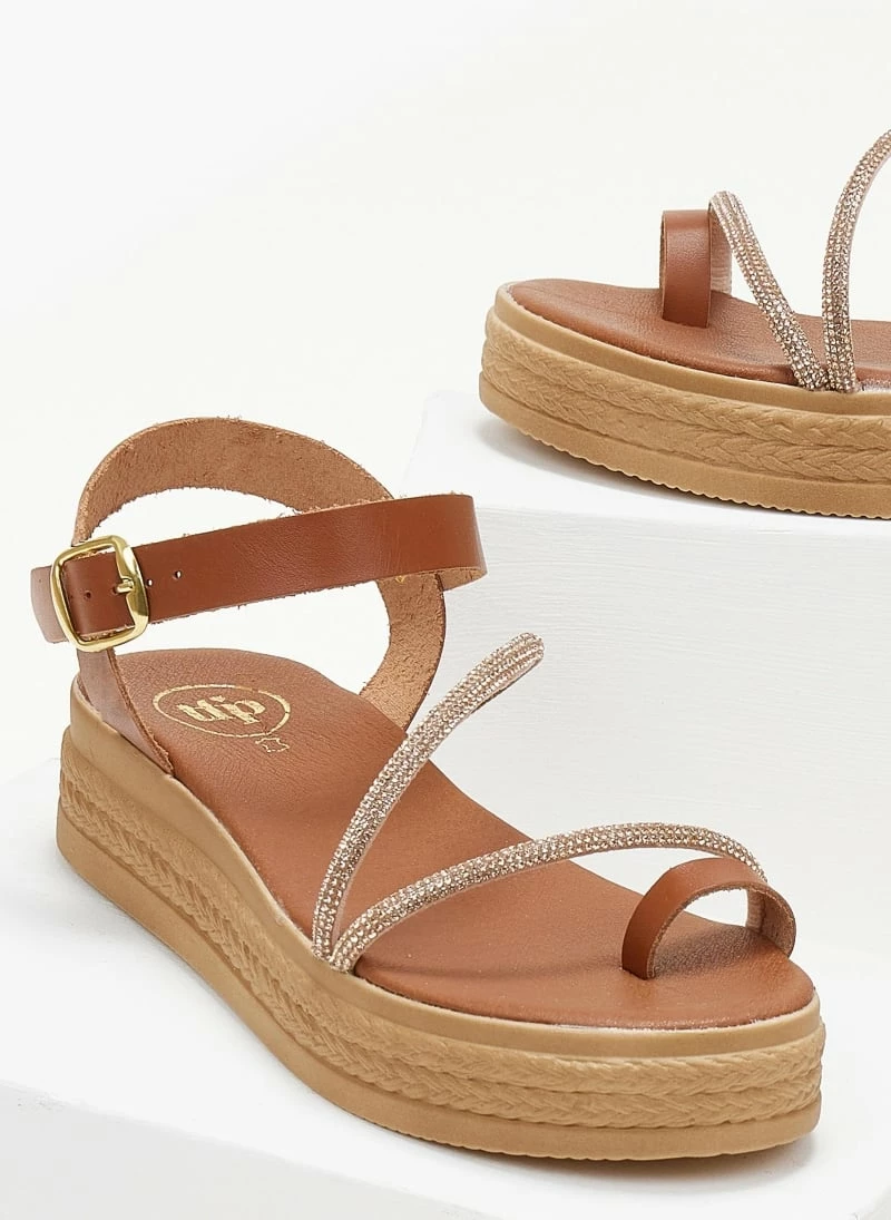 Best Pirce 💯 Εξοδος ⭐ Flatform πέδιλα TFP με μπαρέτα και Strass – Ταμπά ✔️ 💯