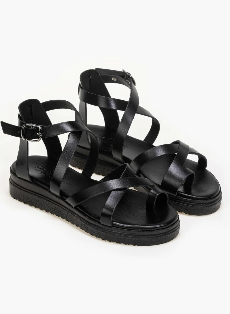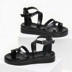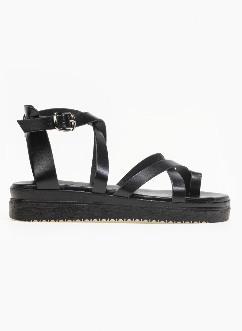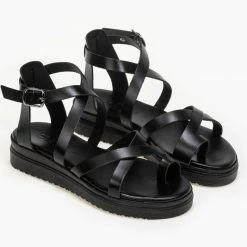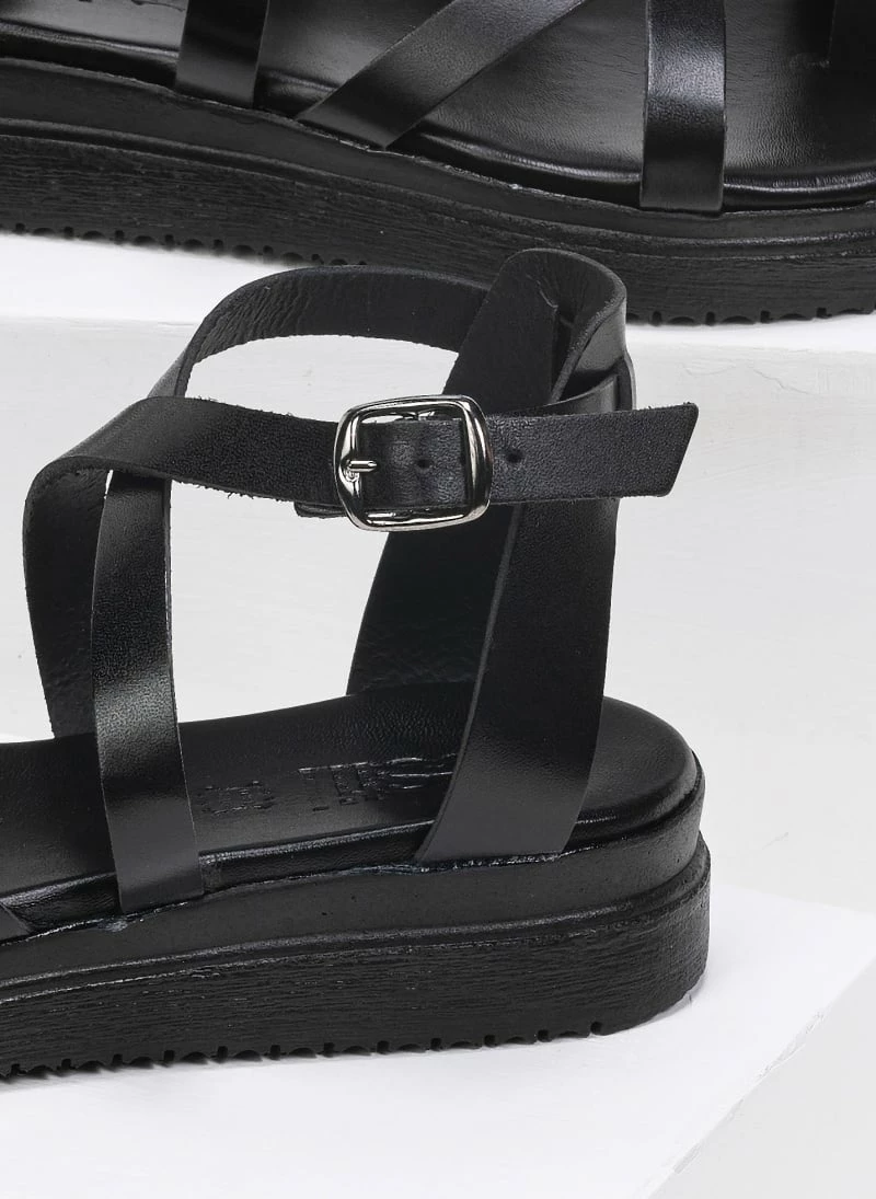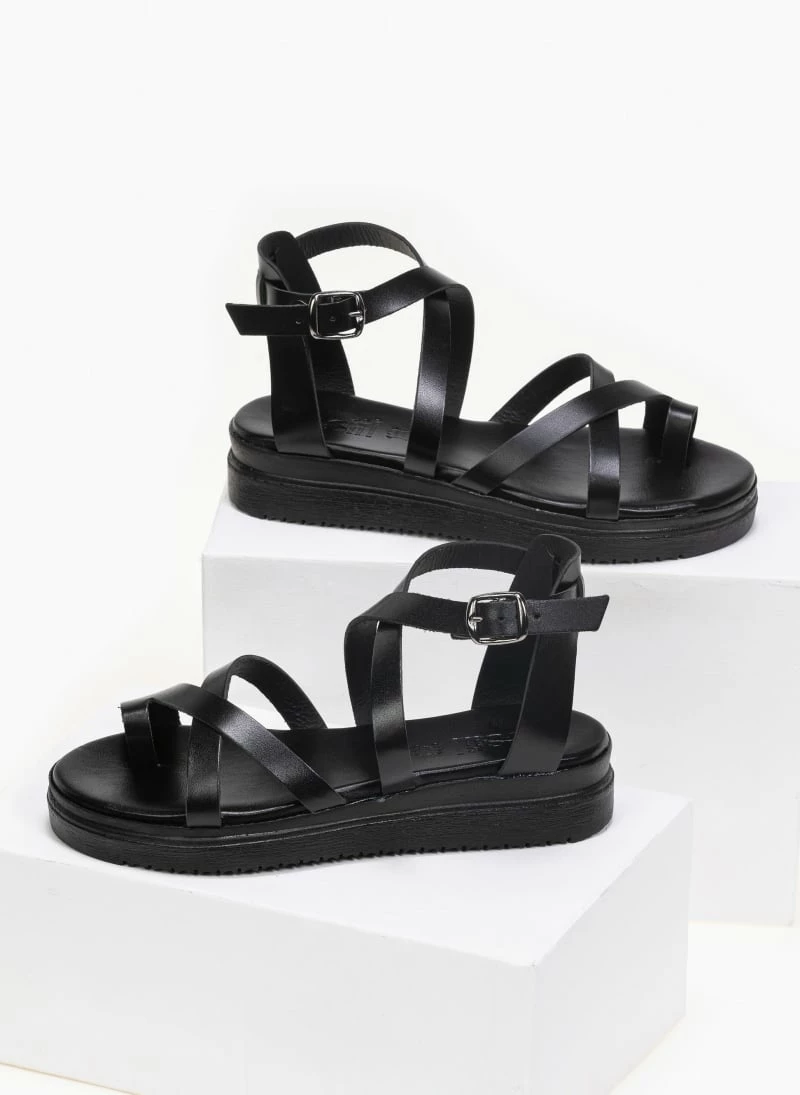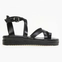 Αγορά 🛒 Το φθηνότερο ⭐ Flatforms δερμάτινα με χιαστί δέσιμο Tfp – Μαύρο 😍 ⭐