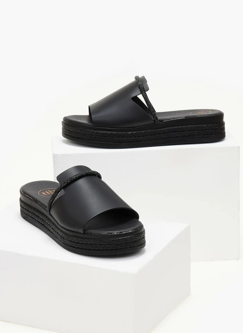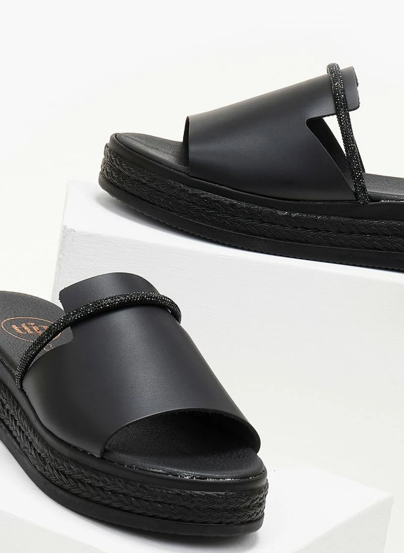 Η καλύτερη συμφωνία 💯 Η καλύτερη συμφωνία 🎉 Flatforms δερμάτινα TFP με Strass λουράκι – Μαύρο 😍 🤩