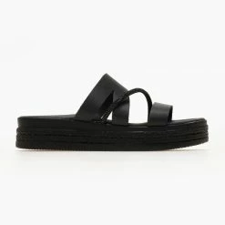Κουπόνι 🛒 Συμφωνίες ✔️ The Fashion Project Πέδιλα Estil φλατ δερμάτινα με κοτσιδάκι – Μαύρο 😀 ✔️