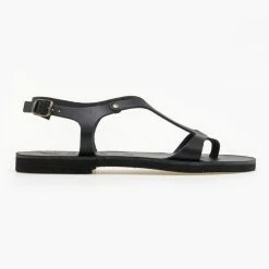 Basic δερμάτινα ίσια πέδιλα. Δένουν με λουράκι στο πλάι. Ελληνικής κατασκευής, χειροποίητα.