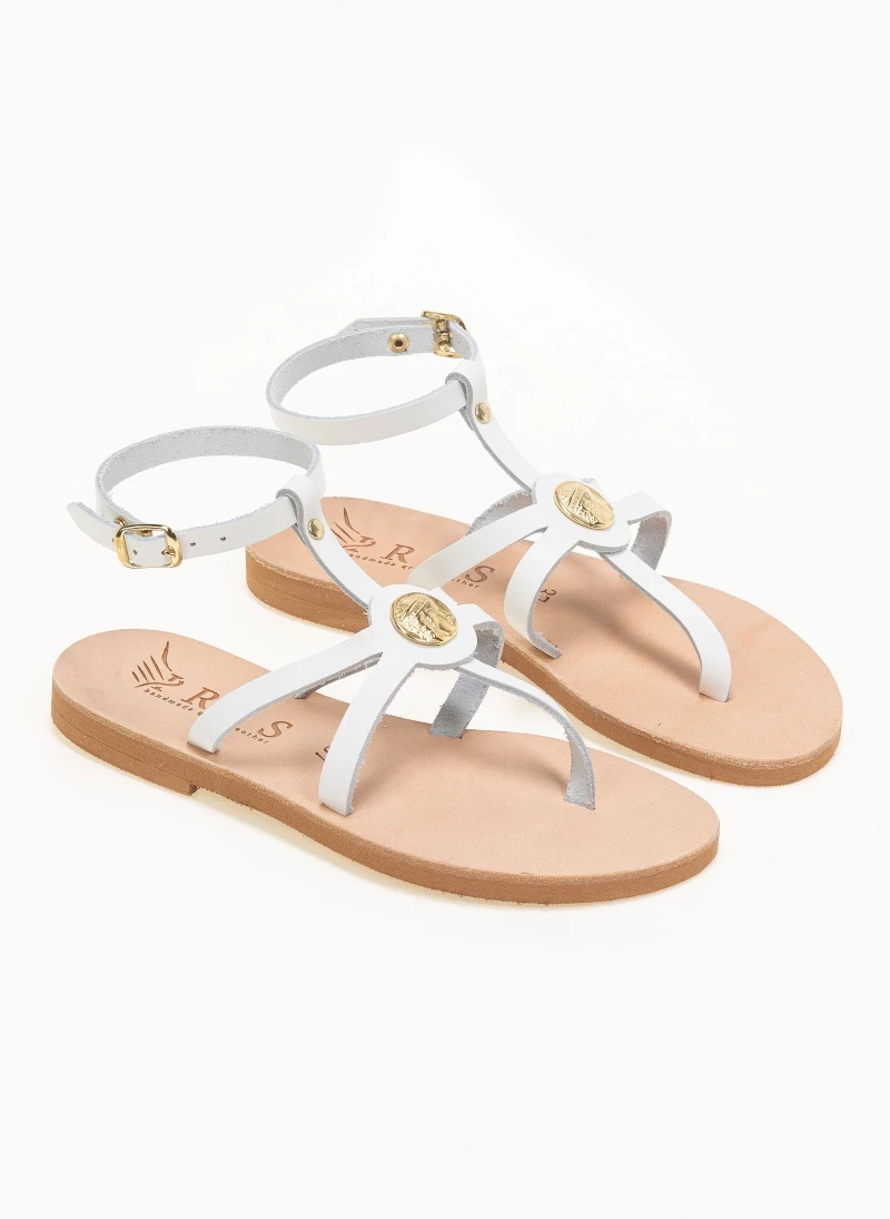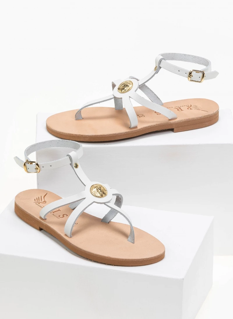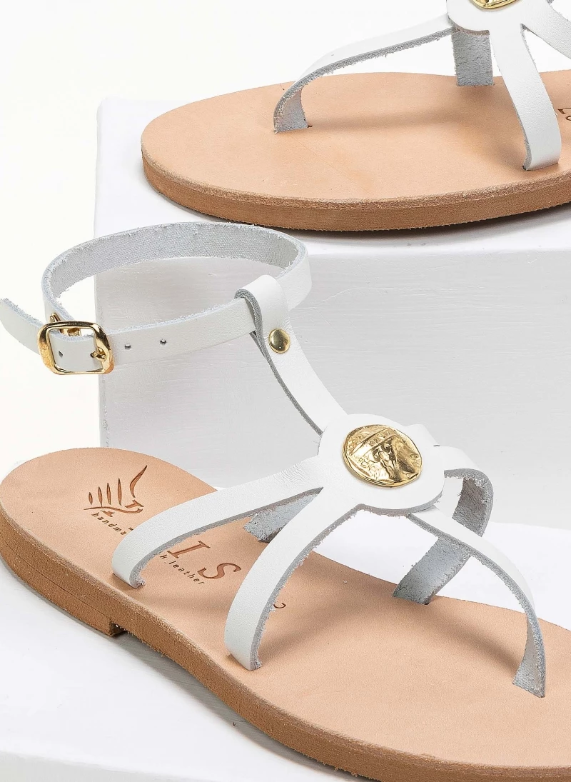 Φτηνός 😍 Καλύτερες κριτικές για 😍 IRIS Πέδιλα δερμάτινα φλατ με μπαρέτα – Λευκό 🔥 🌟