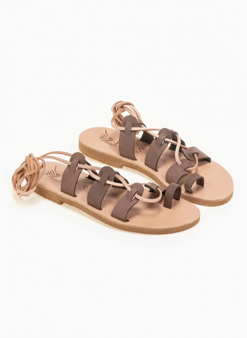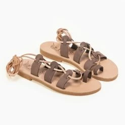 Δερμάτινα ίσια lace up πέδιλα. Δένουν με κορδόνια στη γάμπα. Ελληνικής κατασκευής, χειροποίητα.