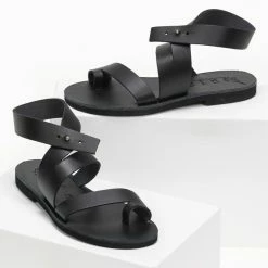 Προϋπολογισμός 🔥 ΧΟΝΔΡΙΚΟ ΕΜΠΟΡΙΟ ✔️ Σανδάλια TFP δερμάτινα με δέσιμο στον αστράγαλο – Μαύρο 👍 💯