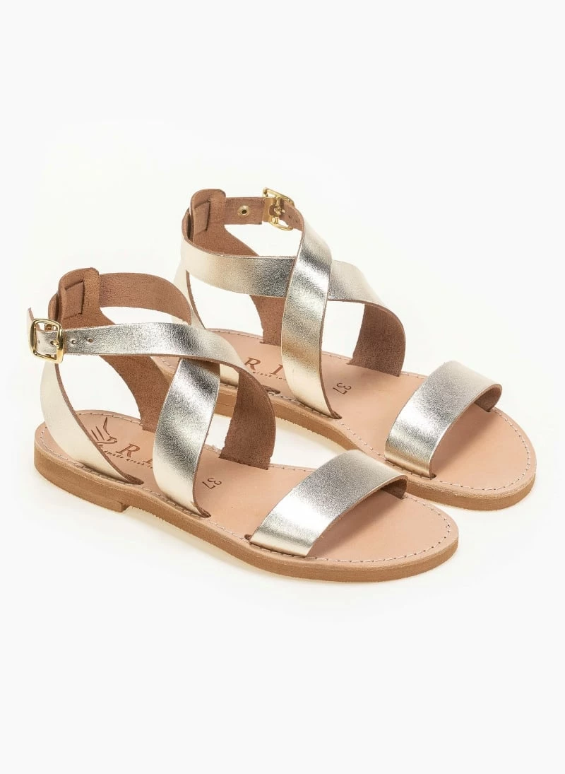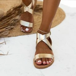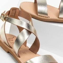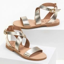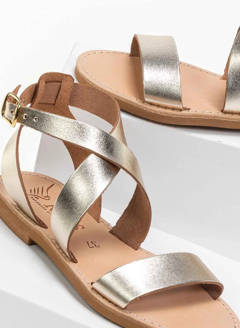 Νέος 🧨 Κουπόνι 🛒 IRIS Πέδιλα ίσια χειροποίητα δερμάτινα – Χρυσό 👍 🧨