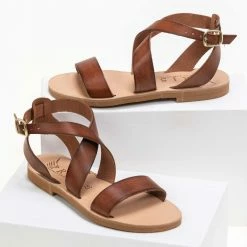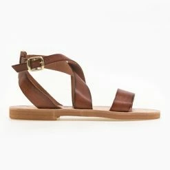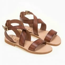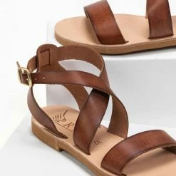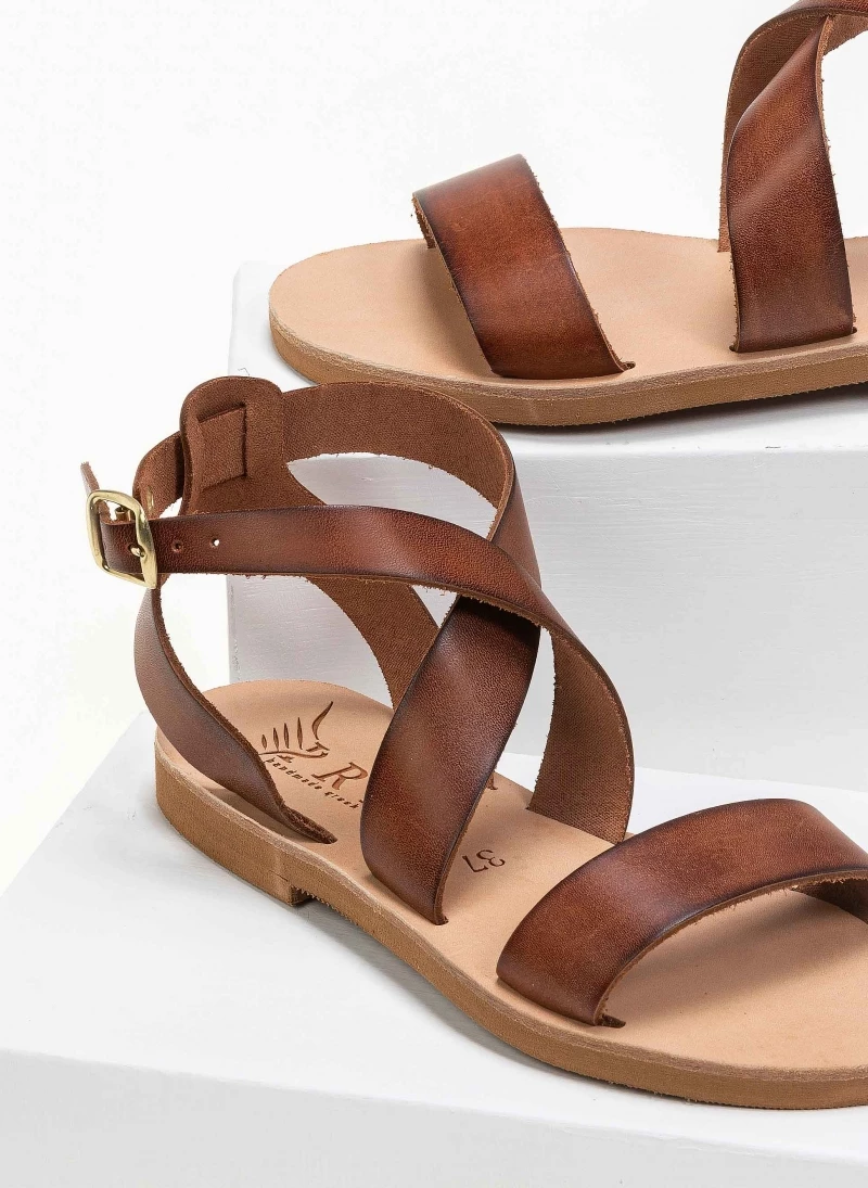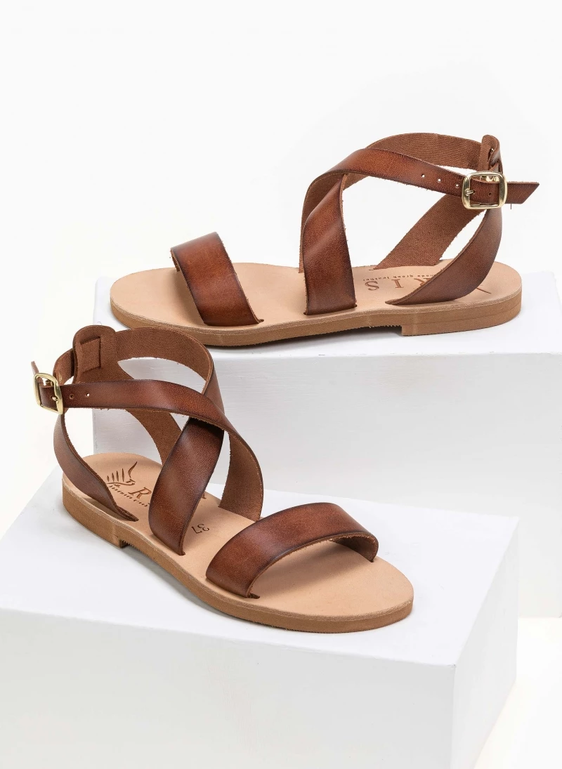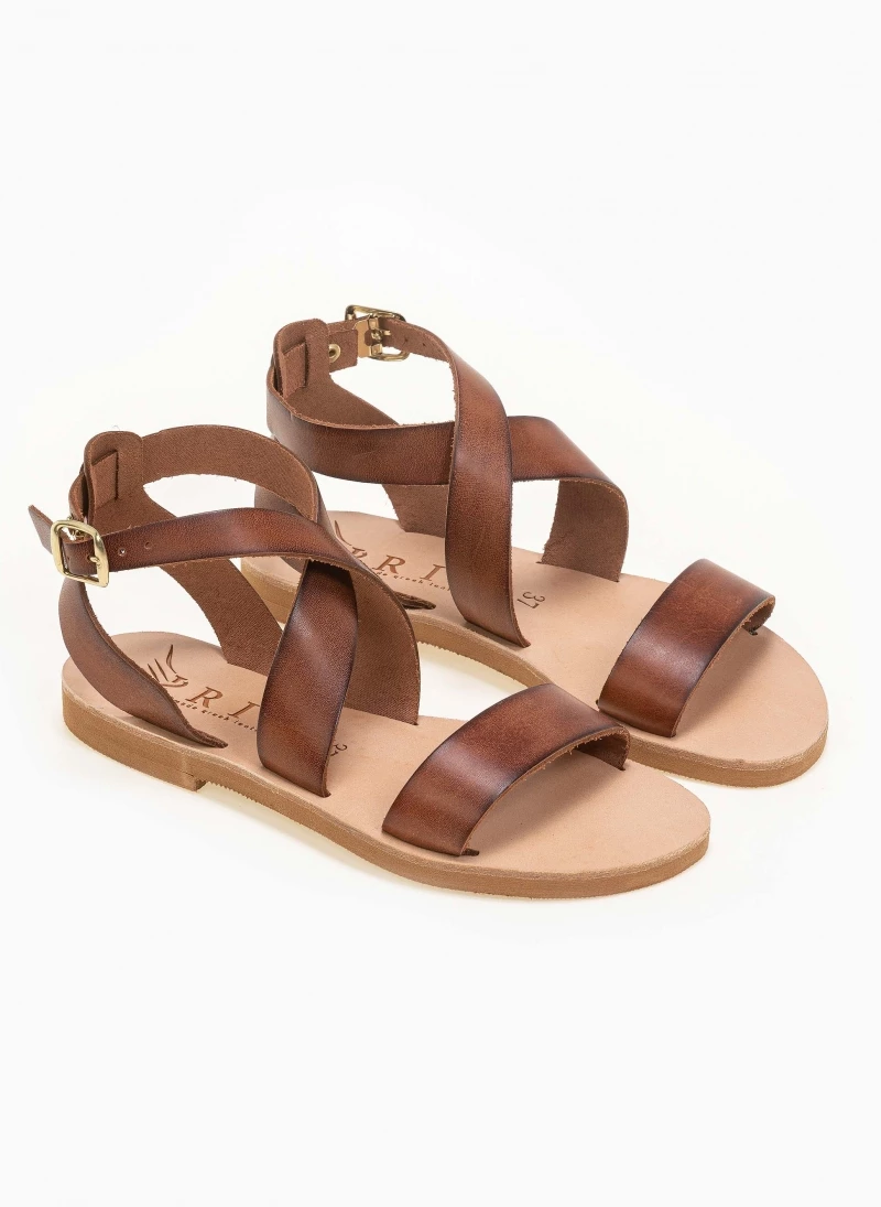 Ολοκαίνουργιο 🔔 Το φθηνότερο 😀 IRIS Πέδιλα ίσια χειροποίητα δερμάτινα – Καφέ ⭐ ✨