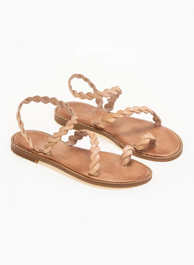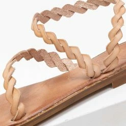 Η καλύτερη συμφωνία 🎉 Προώθηση 👍 IRIS Πέδιλα ίσια δερμάτινα με περαστό λουράκι – Φυσικό ✨ 🧨