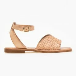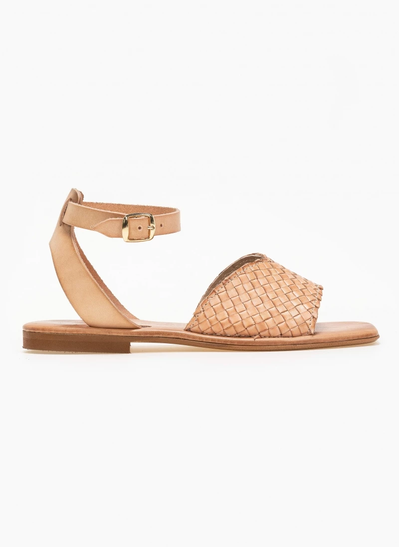 Φτηνός 😍 Κουπόνι 👍 IRIS Πέδιλα ίσια δερμάτινα με πλεκτό Pattern – Φυσικό 🔥 🥰
