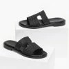 Φτηνός 💯 Εξοδος ⭐ IRIS Πέδιλα καρέ δερμάτινα με ανοίγματα – Μαύρο ❤️ 👏