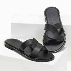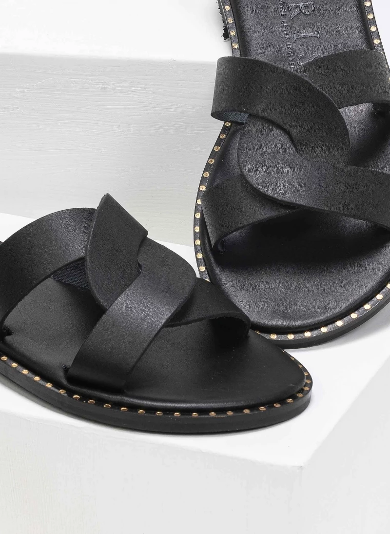 Ολοκαίνουργιο 🔔 Η καλύτερη συμφωνία 👍 IRIS Σανδάλια δερμάτινα φλατ με περαστές φάσες – Μαύρο 😍 🧨