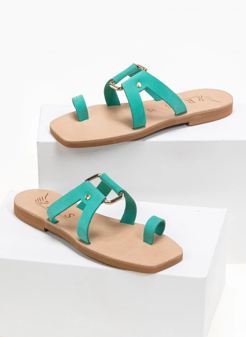 Προϋπολογισμός 👍 Το φθηνότερο 🥰 IRIS Σανδάλια δερμάτινα καρέ με μεταλλική αγκράφα – Μέντα 🧨 ⭐