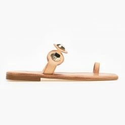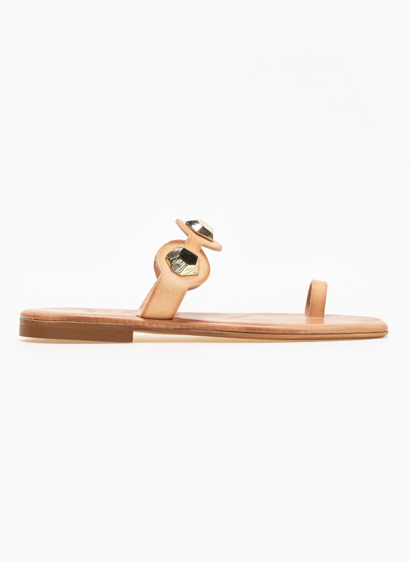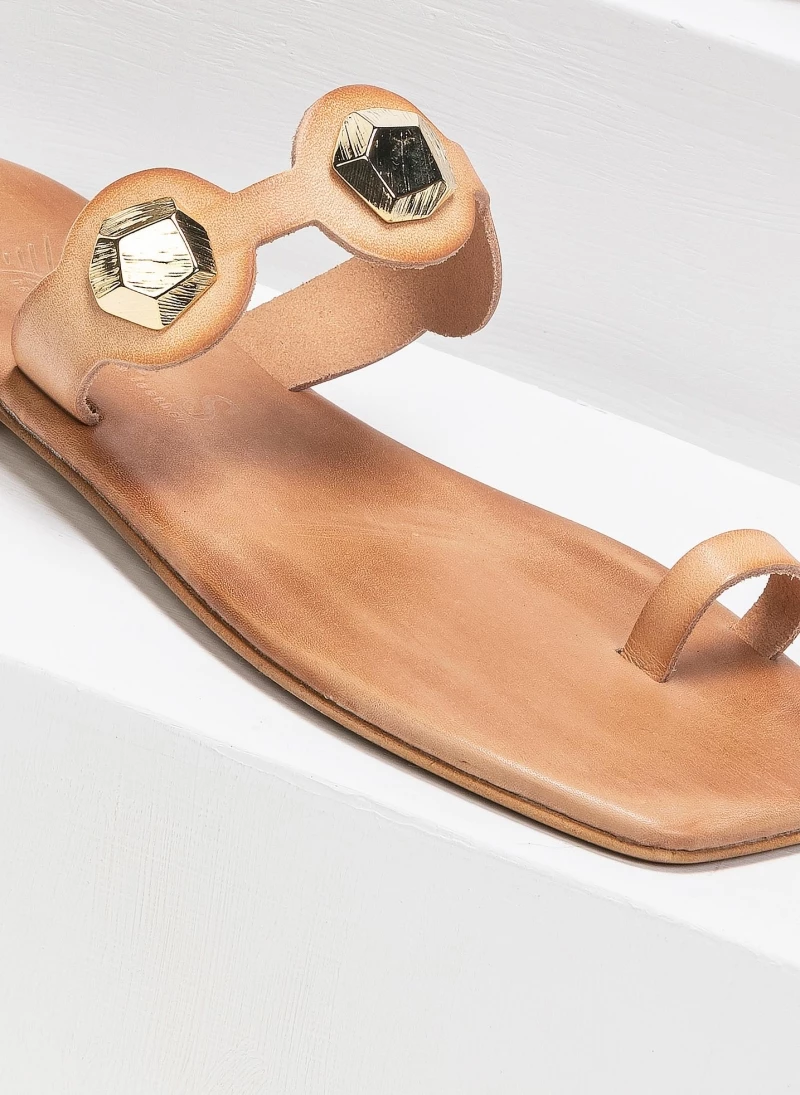 Τοπ 10 🎉 Εξοδος ⌛ IRIS Σανδάλια δερμάτινα καρέ με πολύγωνο μεταλλικό στοιχείο – Φυσικό 🔥 🔔