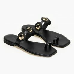 Κουπόνι 🛒 Συμφωνίες ✔️ The Fashion Project Πέδιλα Estil φλατ δερμάτινα με κοτσιδάκι – Μαύρο 😀 ✔️