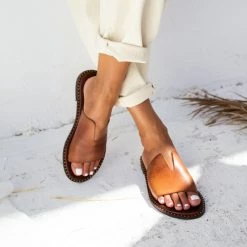 Πολύ καλή προσφορά 🛒 Αγορά 🥰 Σανδάλια Estil δερμάτινα με ανάγλυφο σχέδιο – Χαλκός ⌛ ✨
