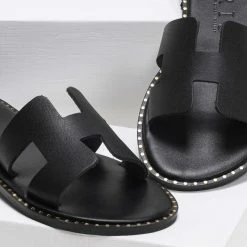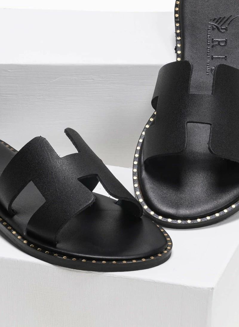 Best Pirce 🔥 Flash Sale ✔️ IRIS Σανδάλια δερμάτινα με ανοίγματα στη φάσα – Μαύρο 🤩 ⭐
