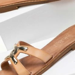 Best Pirce ✔️ Προϋπολογισμός 👍 Πέδιλα TFP Flat δερμάτινα με χιαστί δέσιμο – Χαλκός 👏 ⭐