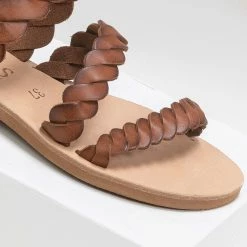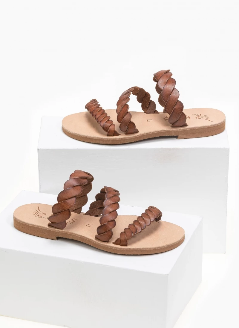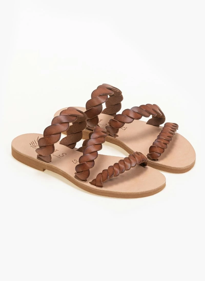 Φτηνός 😀 Πολύ καλή προσφορά 👏 IRIS Σανδάλια δερμάτινα με πλεγμένα λουράκια – Καφέ 👏 🌟