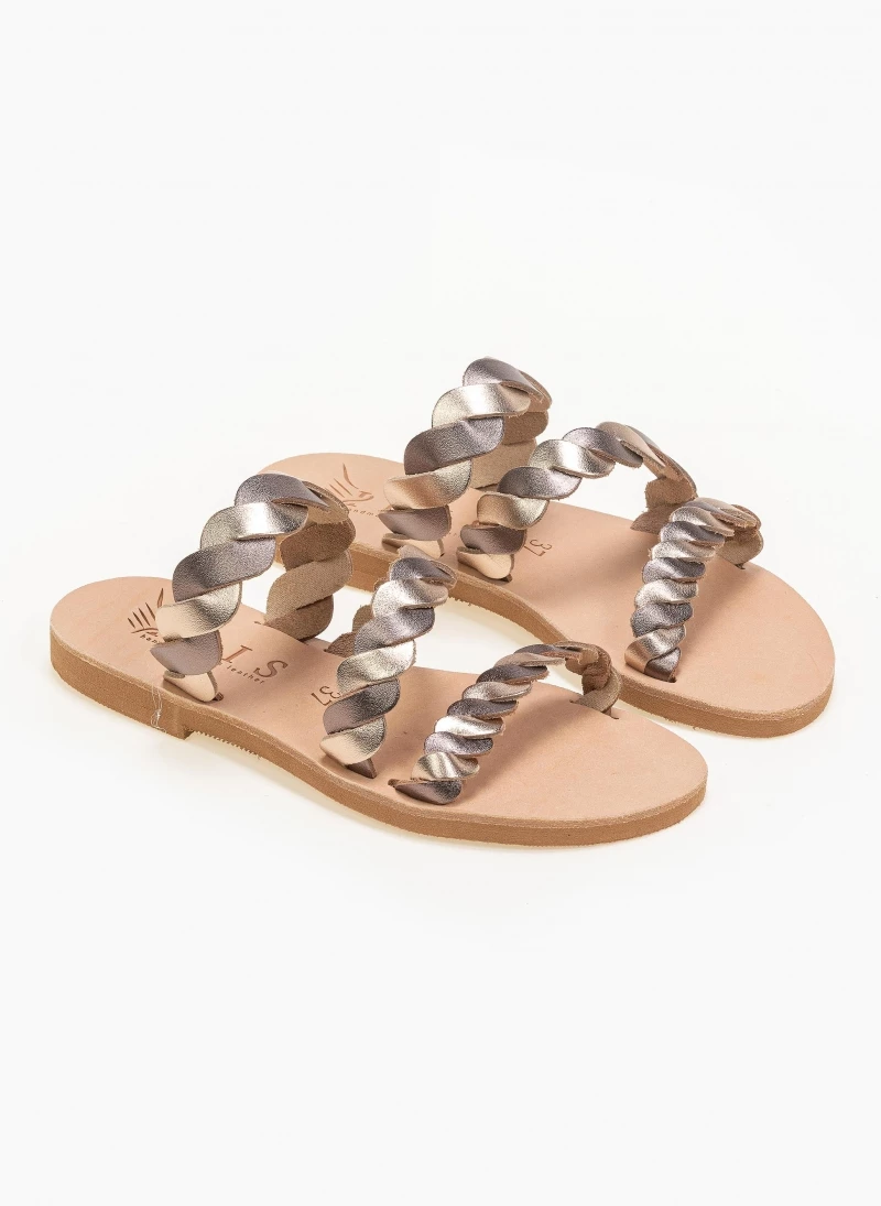 Best Pirce ✔️ Προϋπολογισμός 👍 Πέδιλα TFP Flat δερμάτινα με χιαστί δέσιμο – Χαλκός 👏 ⭐