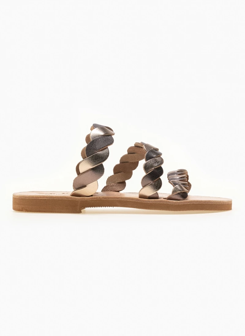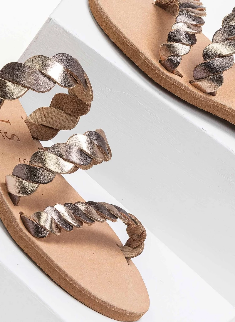 Δερμάτινα σανδάλια με πλεγμένα λουράκια. Ελληνικής κατασκευής, χειροποίητα.