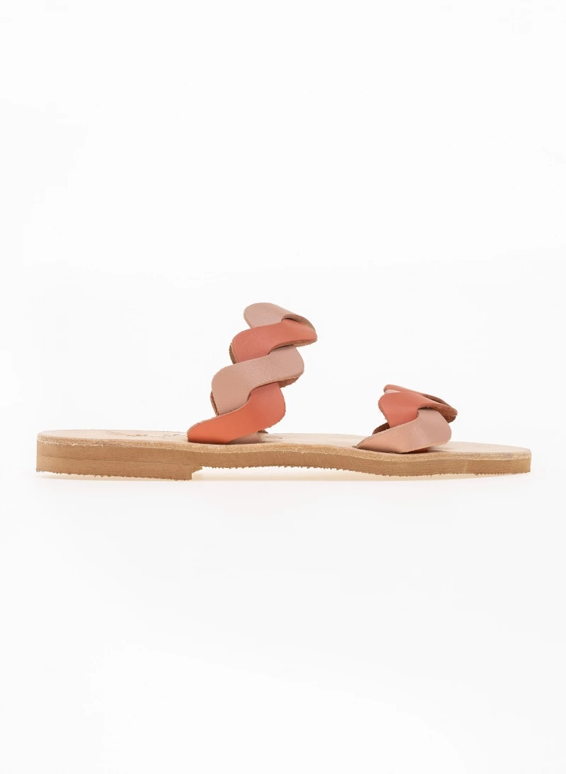 Δίχρωμα σανδάλια από γνήσιο δέρμα με πλεγμένες wavy φάσες. Ελληνικής κατασκευής,χειροποίητα. Δερμάτινος πάτος.
