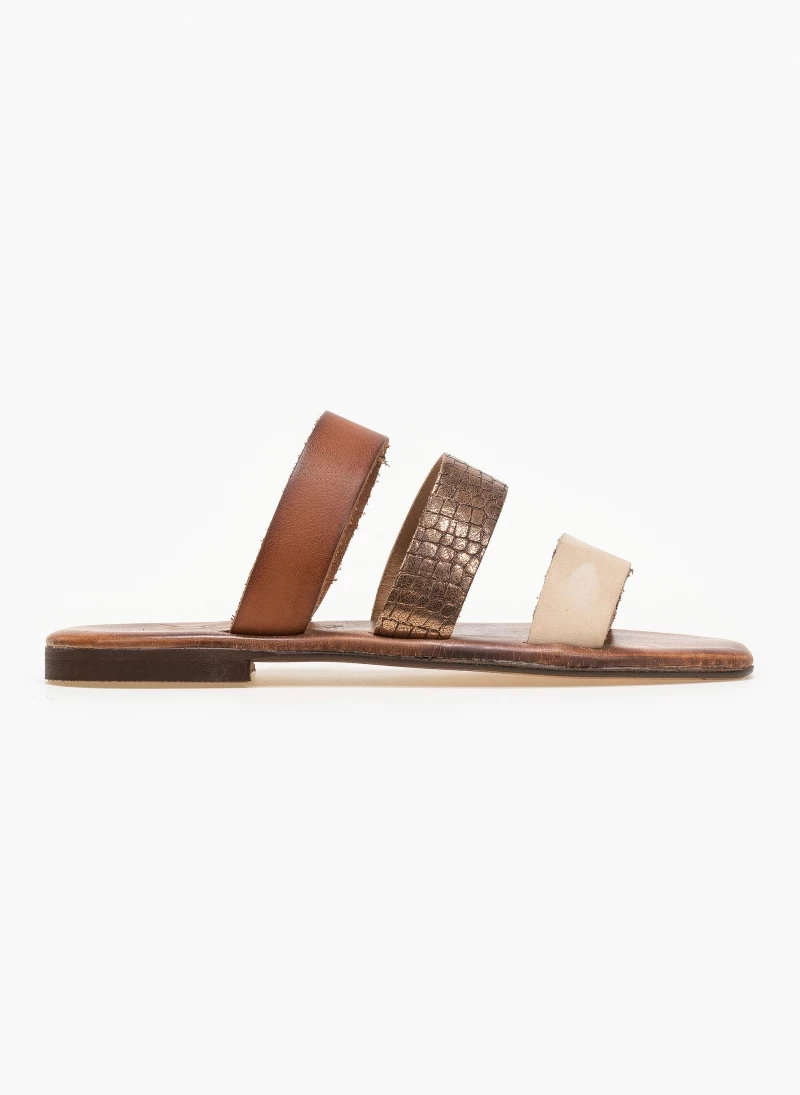 Πολύ καλή προσφορά 🛒 Αγορά 🥰 Σανδάλια Estil δερμάτινα με ανάγλυφο σχέδιο – Χαλκός ⌛ ✨