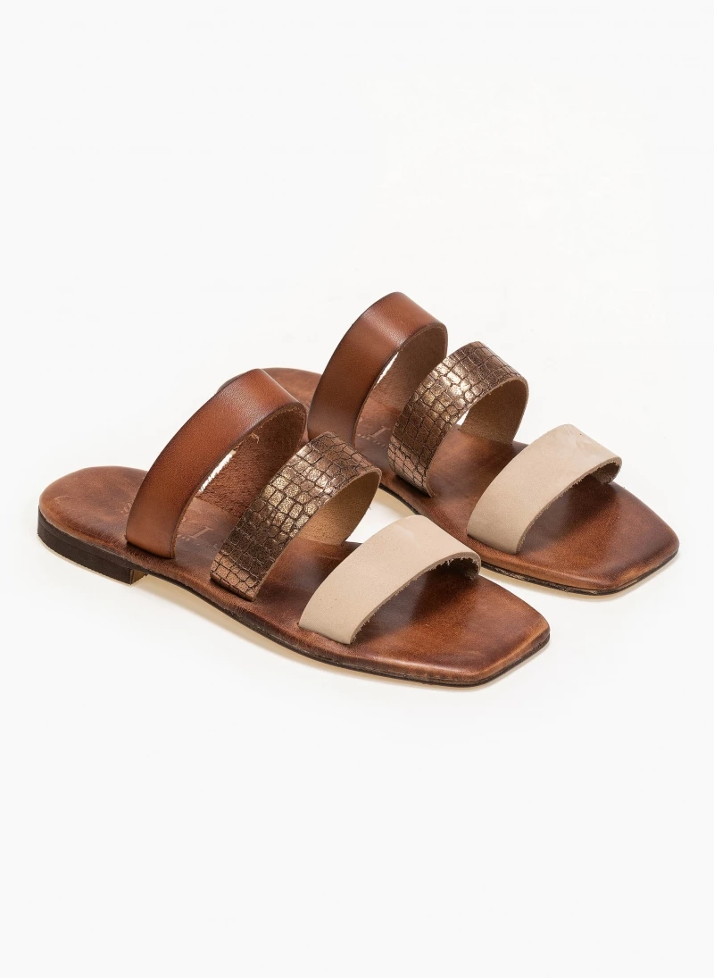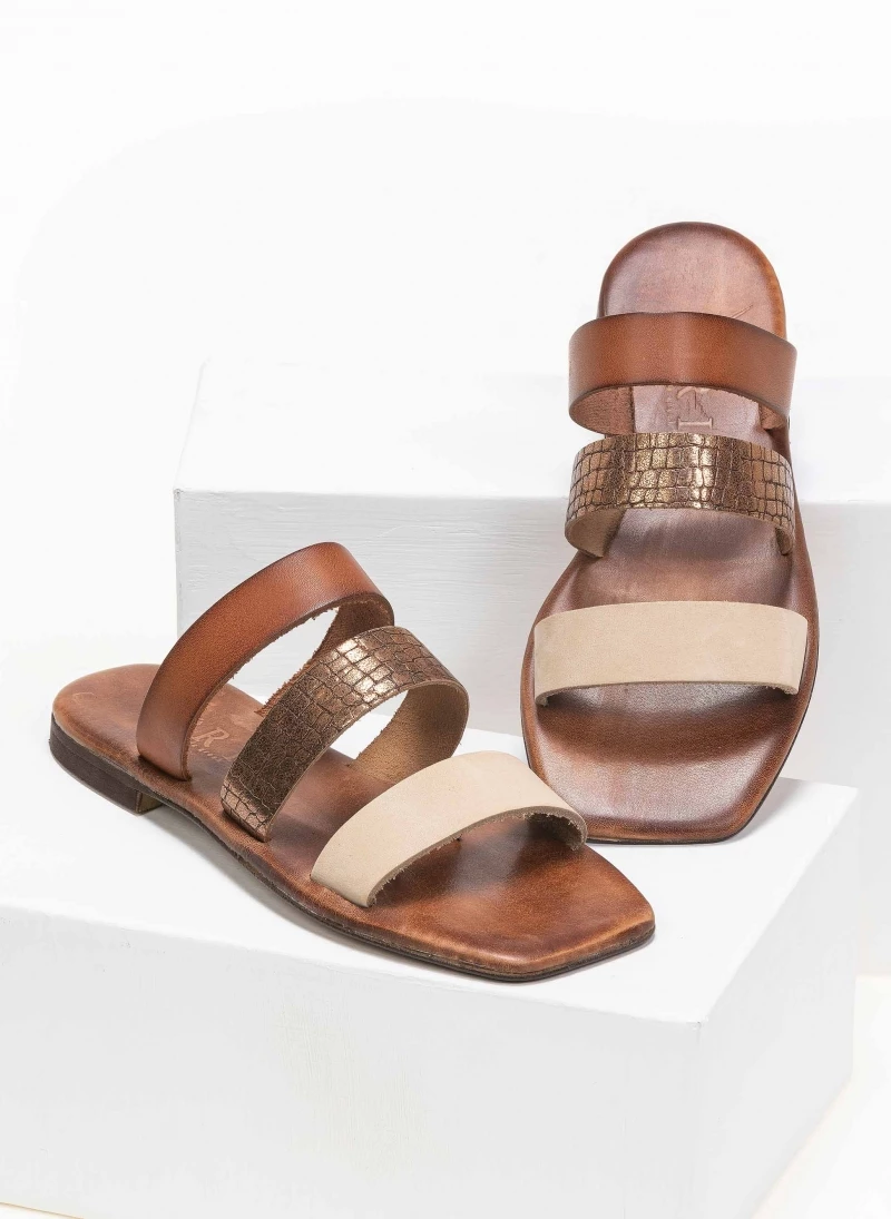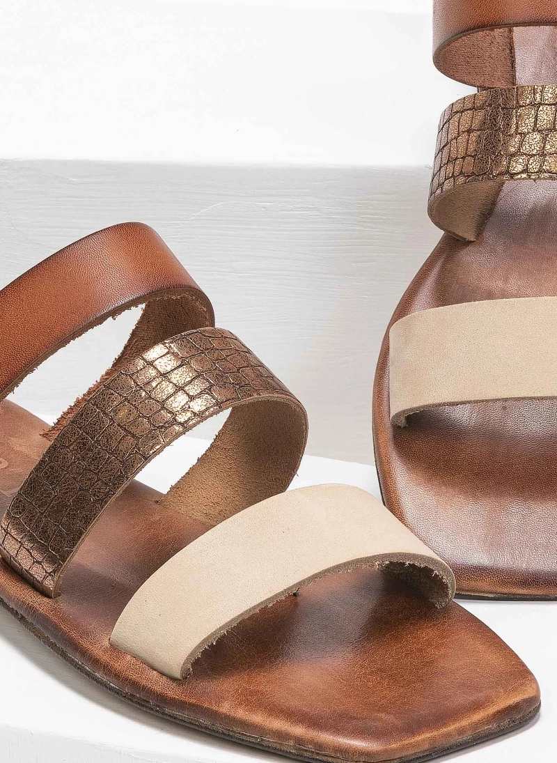 ΧΟΝΔΡΙΚΟ ΕΜΠΟΡΙΟ 🔥 Προώθηση 💯 IRIS Σανδάλια καρέ δερμάτινα με φάσα κροκό – Μπρονζέ 🔔 ❤️