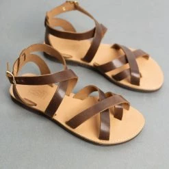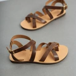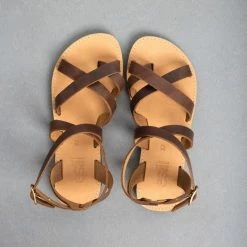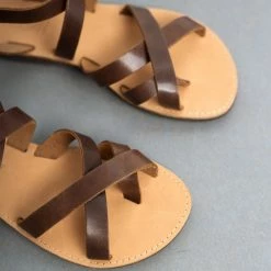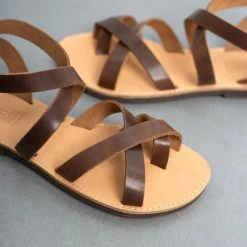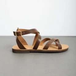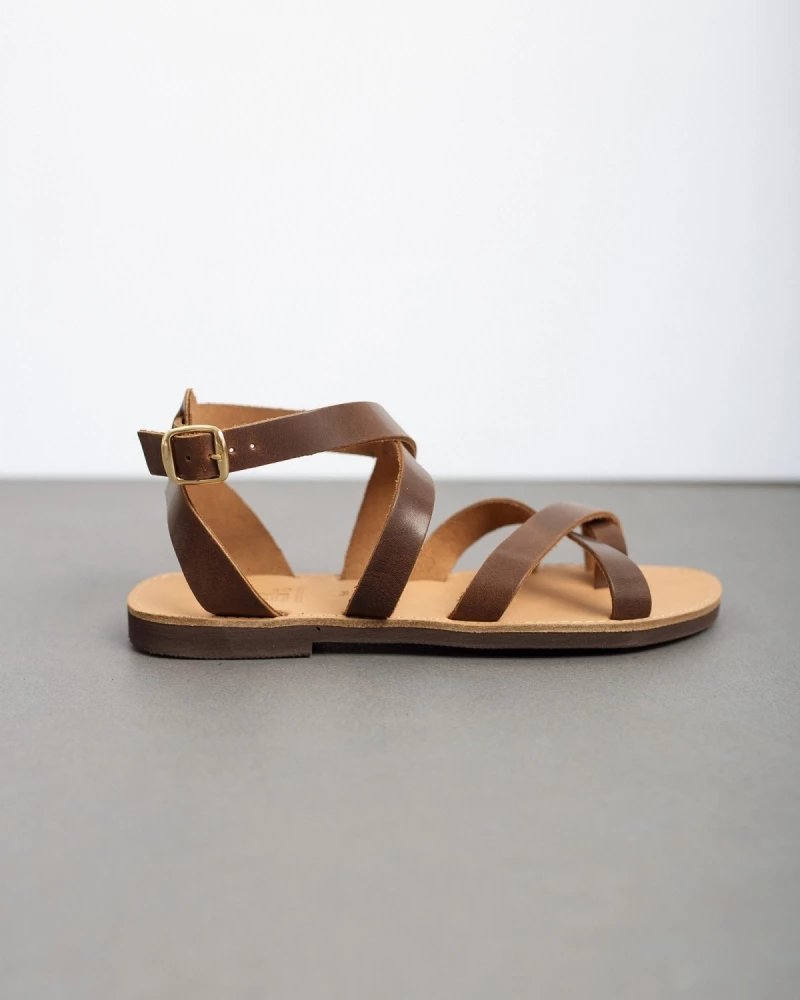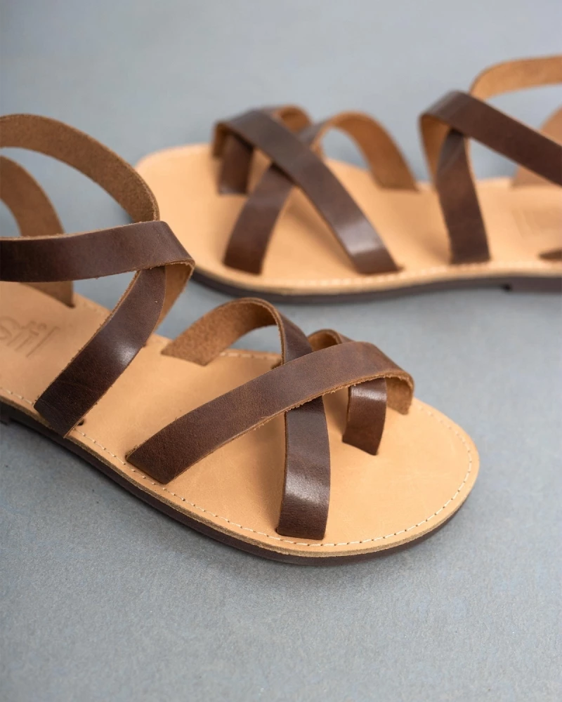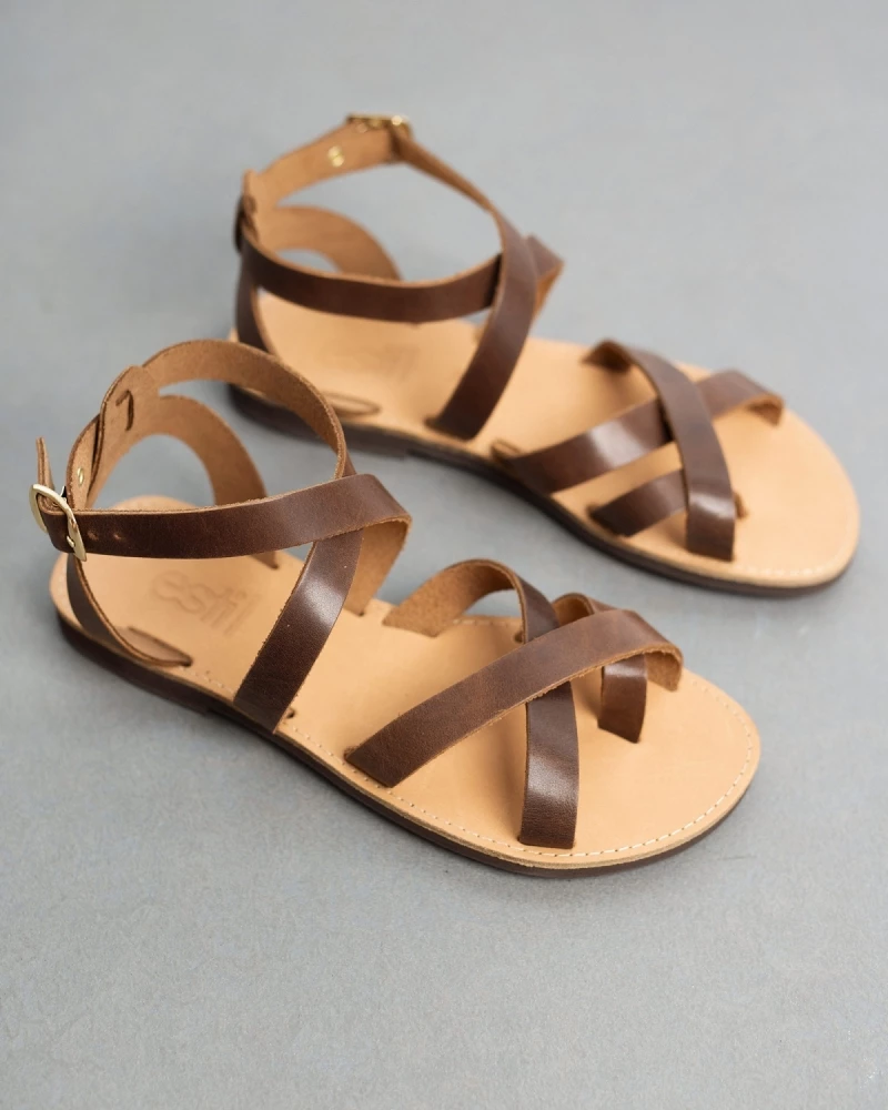 Καλύτερη πώληση ❤️ Εξοδος 👍 Πέδιλα δερμάτινα Estil με χιαστί σχέδιο – Καφέ 🎁 🎁
