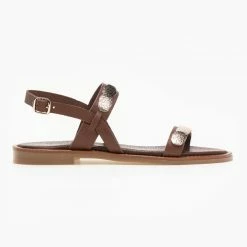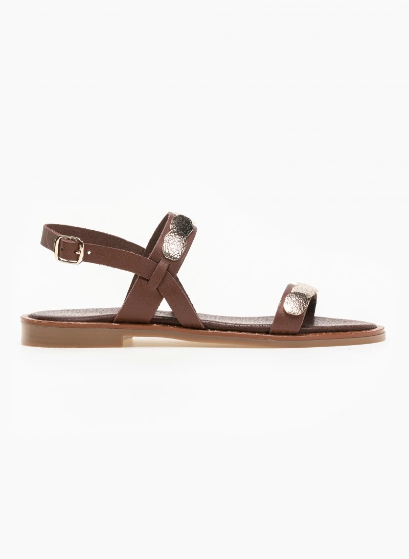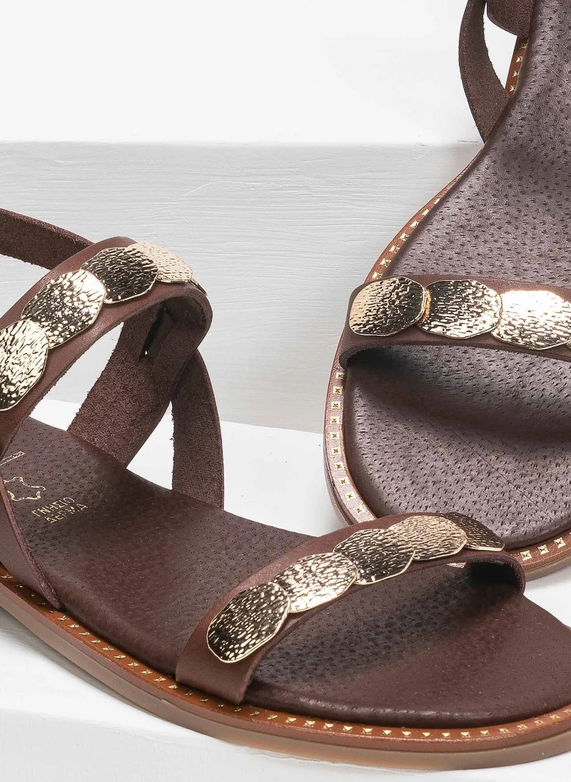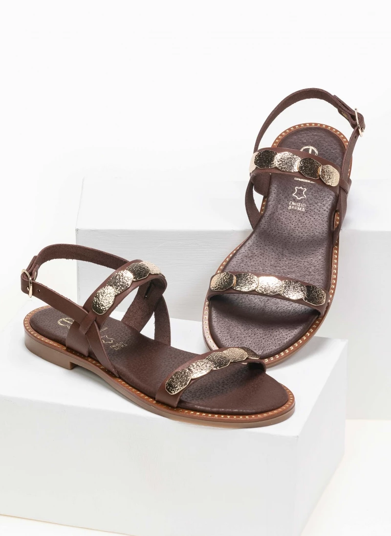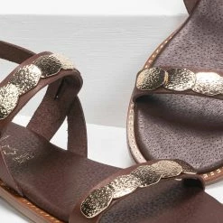 Προώθηση 🛒 Προϋπολογισμός 🤩 Πέδιλα δερμάτινα Estil με μεταλλικά στοιχεία – Καφέ 🌟 😉