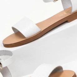 Η καλύτερη συμφωνία ⌛ Νέος 🎉 Πέδιλα δερμάτινα ίσια με Pattern Tfp – Λευκό 🌟 🔔