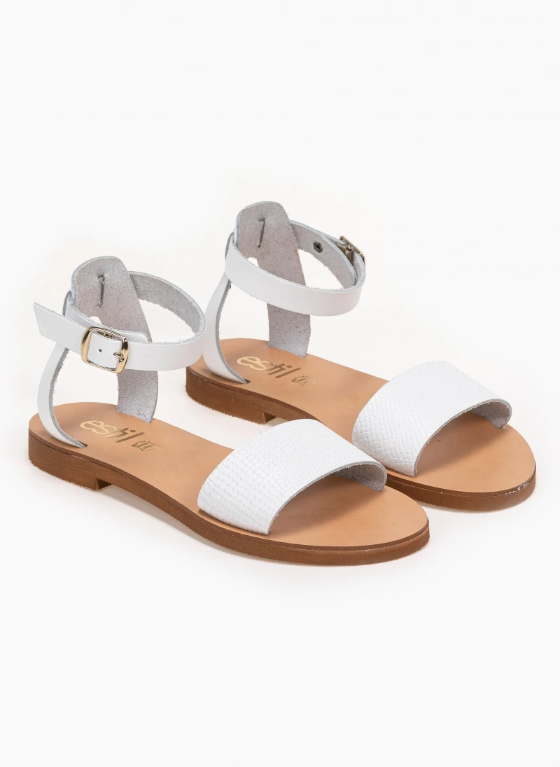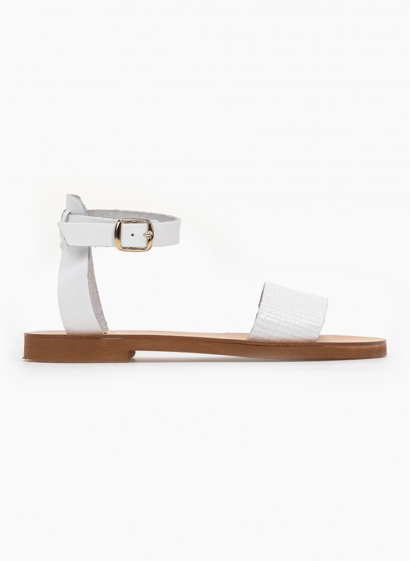 Tfp δερμάτινα ίσια πέδιλα με pattern φίδι. Δένουν με μπαρέτα στο ύψος του αστραγάλου. Ελληνικής κατασκευής, χειροποίητα.