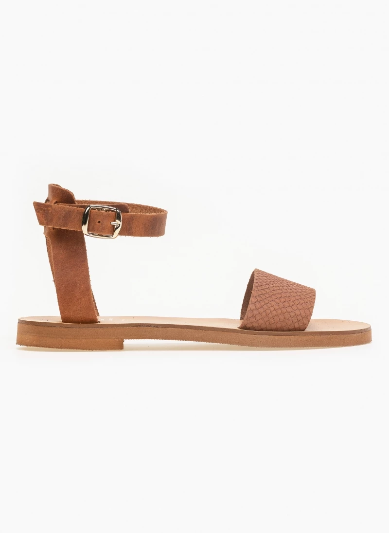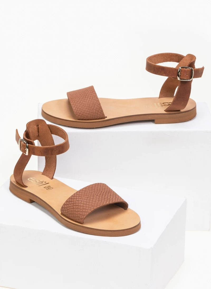 Tfp δερμάτινα ίσια πέδιλα με pattern φίδι. Δένουν με μπαρέτα στο ύψος του αστραγάλου. Ελληνικής κατασκευής, χειροποίητα.