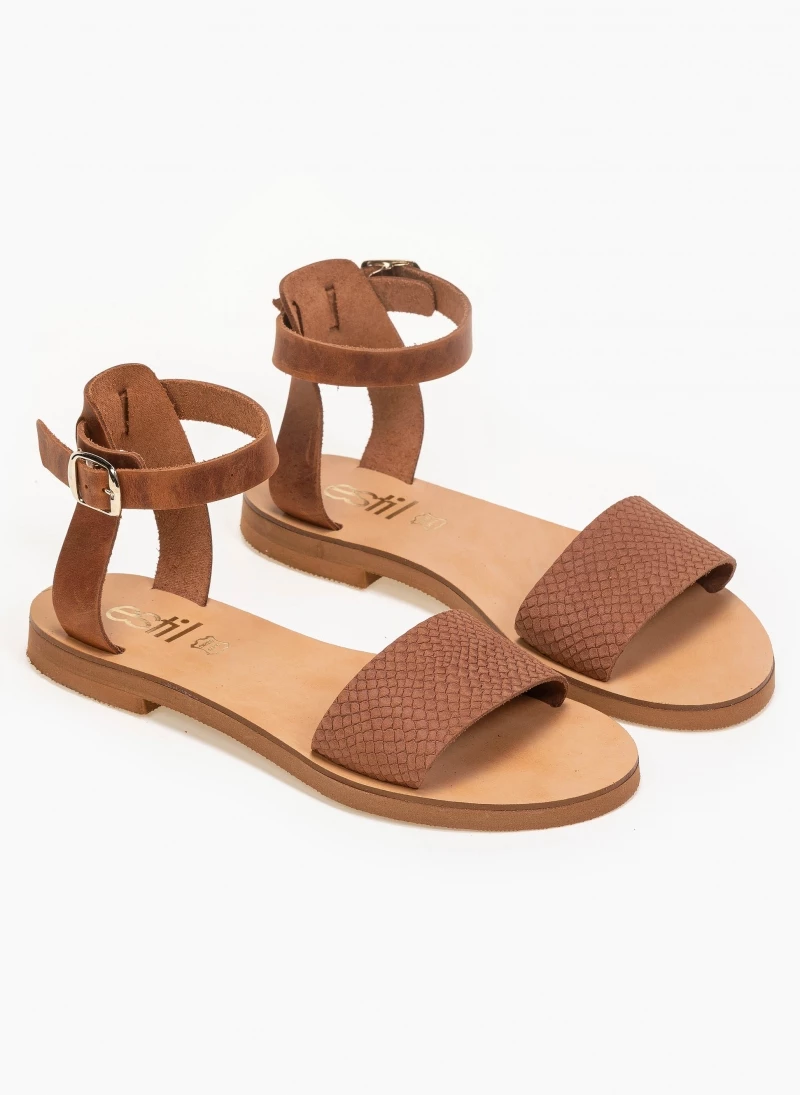 Το φθηνότερο 👍 Το φθηνότερο 🎉 Σανδάλια Estil δερμάτινα με φάσα και λουράκι – Κάμελ ⌛ 👍