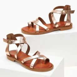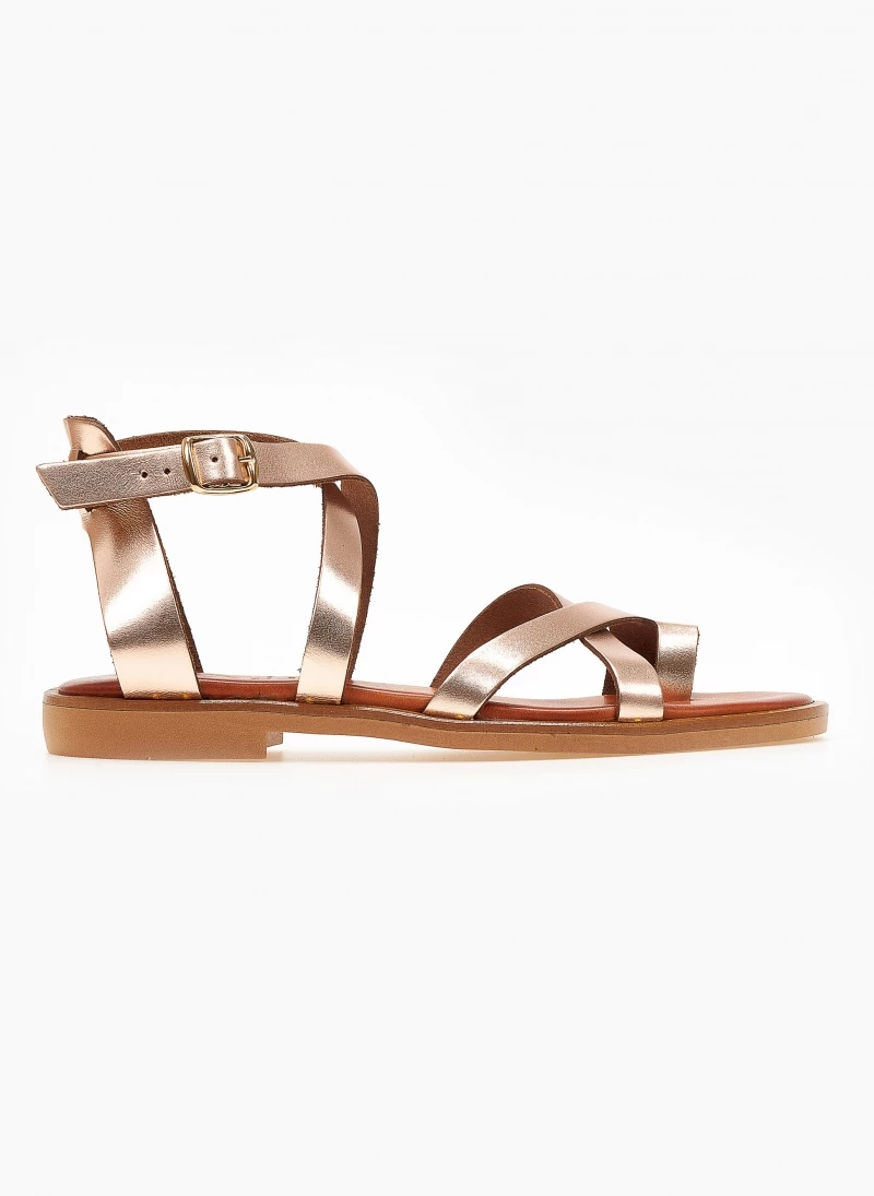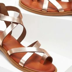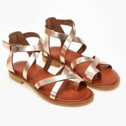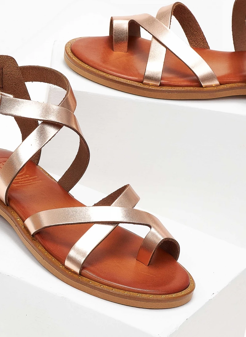 Best Pirce ✔️ Προϋπολογισμός 👍 Πέδιλα TFP Flat δερμάτινα με χιαστί δέσιμο – Χαλκός 👏 ⭐