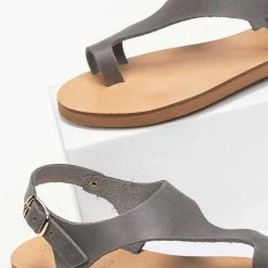 Best Pirce 👍 Συμφωνίες 🎁 Πέδιλα Estil δερμάτινα ίσια – Γκρι 🧨 😀