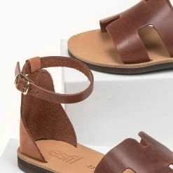 Το φθηνότερο 👍 Το φθηνότερο 🎉 Σανδάλια Estil δερμάτινα με φάσα και λουράκι – Κάμελ ⌛ 👍