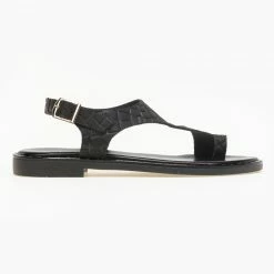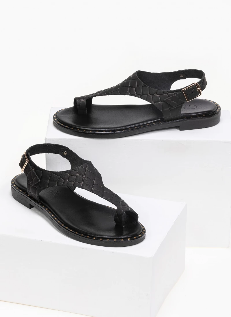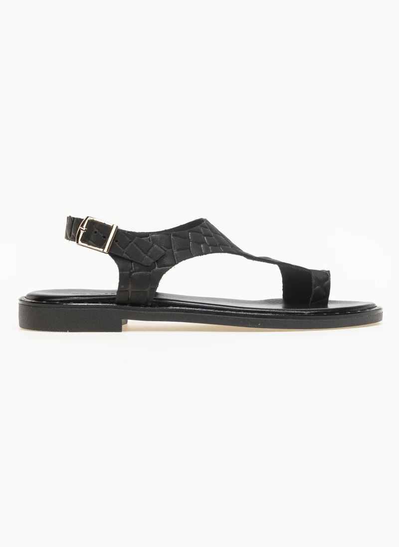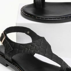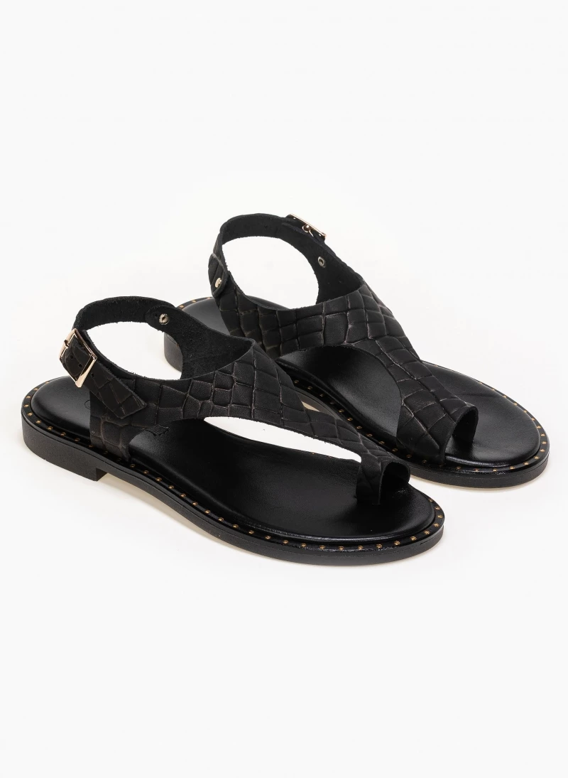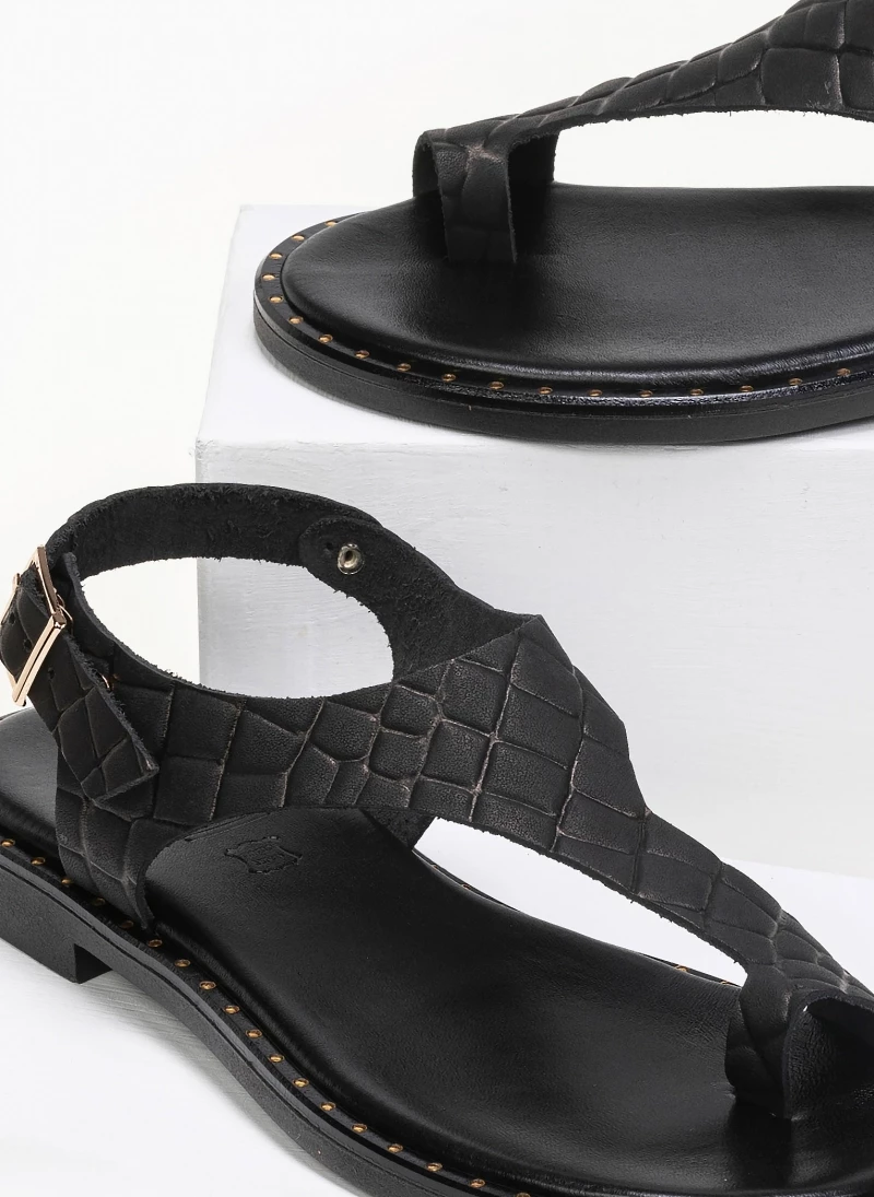 Το φθηνότερο 🛒 Best Pirce 😍 Πέδιλα Estil δερμάτινα κροκό φλατ – Μαύρο ❤️ ⭐