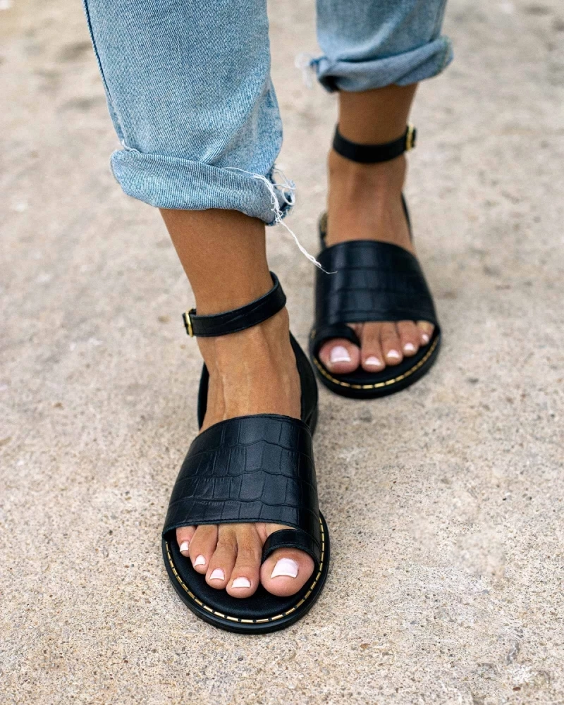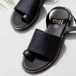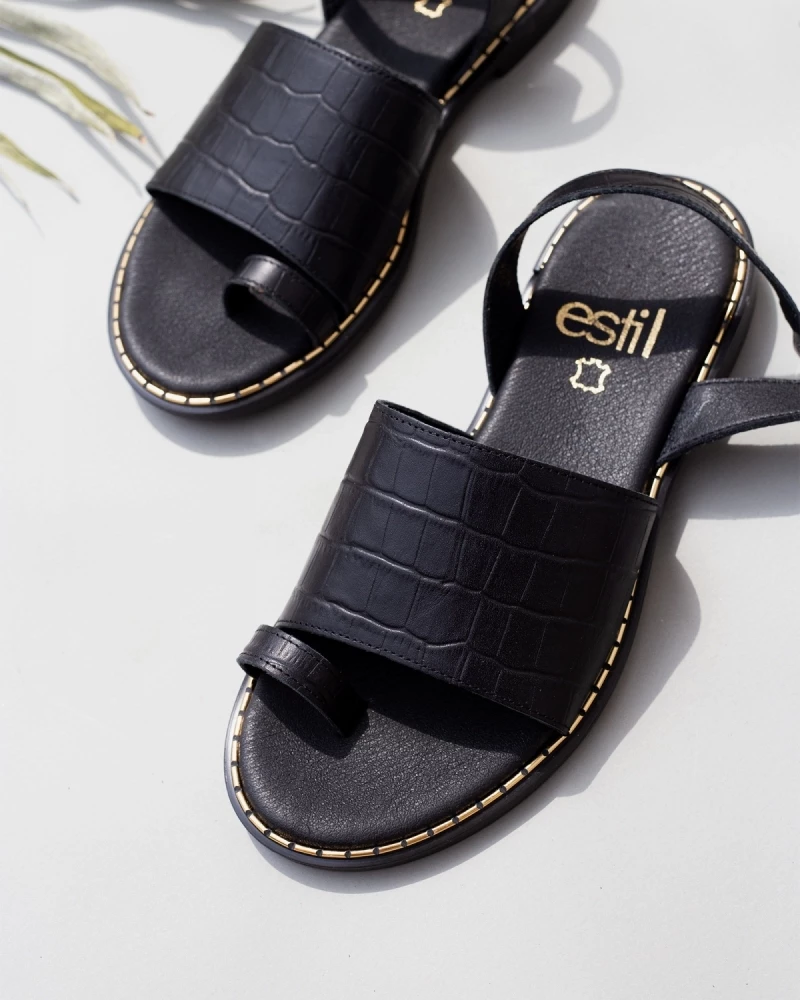 ΧΟΝΔΡΙΚΟ ΕΜΠΟΡΙΟ 😉 Best Pirce 👍 Πέδιλα Estil δερμάτινα κροκό ίσια – Μαύρο 🧨 🤩