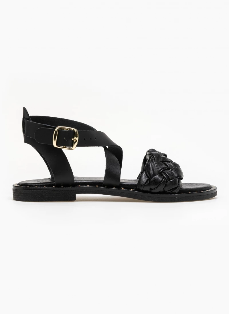 Κουπόνι 🛒 Συμφωνίες ✔️ The Fashion Project Πέδιλα Estil φλατ δερμάτινα με κοτσιδάκι – Μαύρο 😀 ✔️