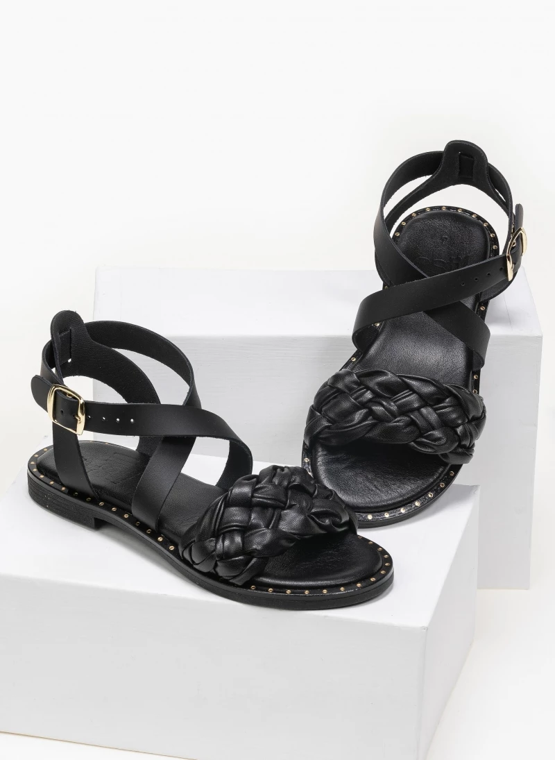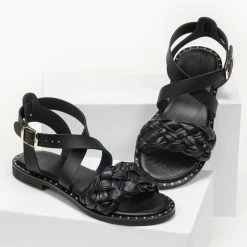 Το φθηνότερο 🎁 Ολοκαίνουργιο 🥰 Πέδιλα Estil δερμάτινα με πλεκτή φάσα – Μαύρο 💯 😍