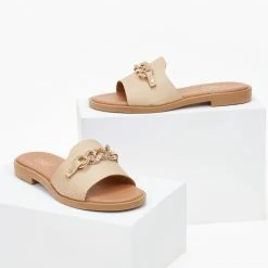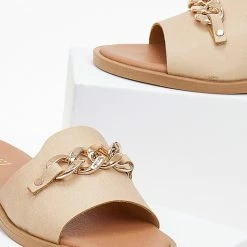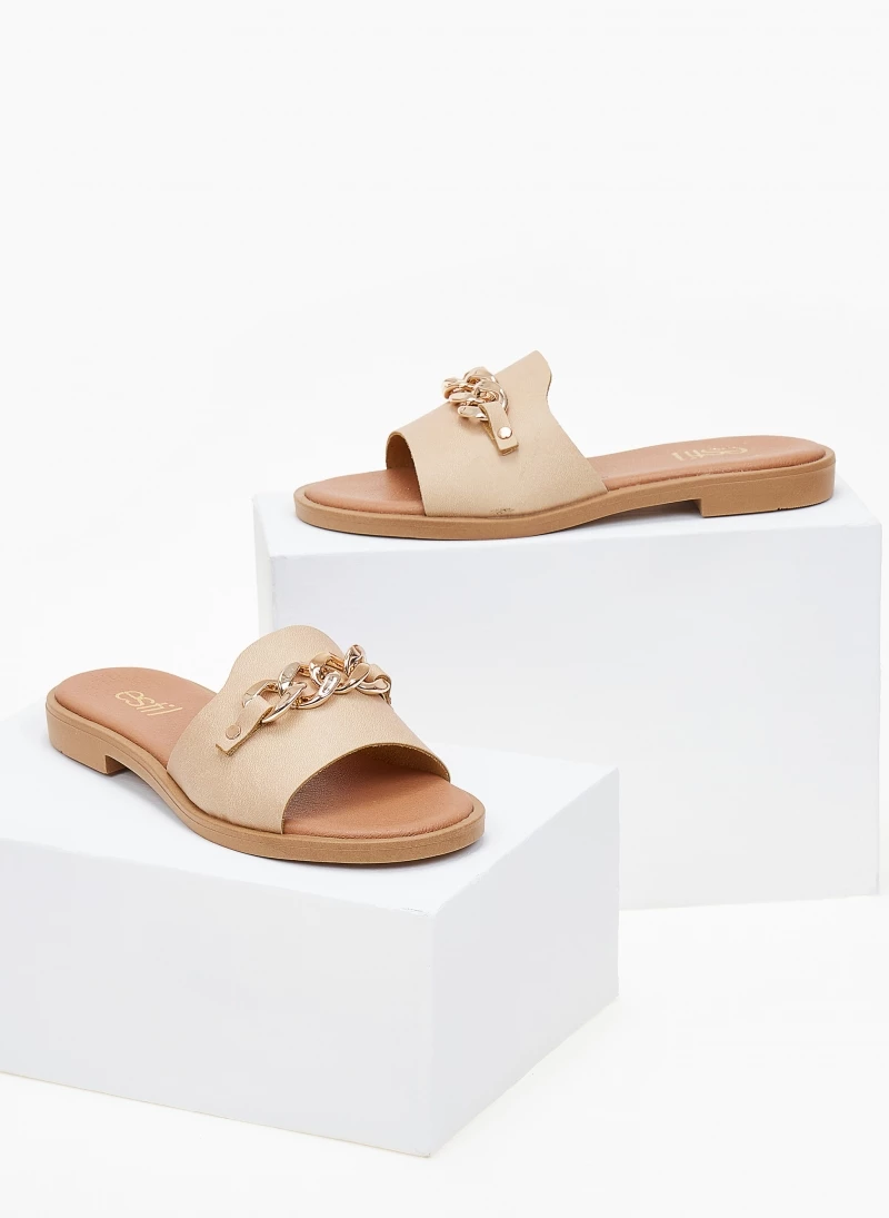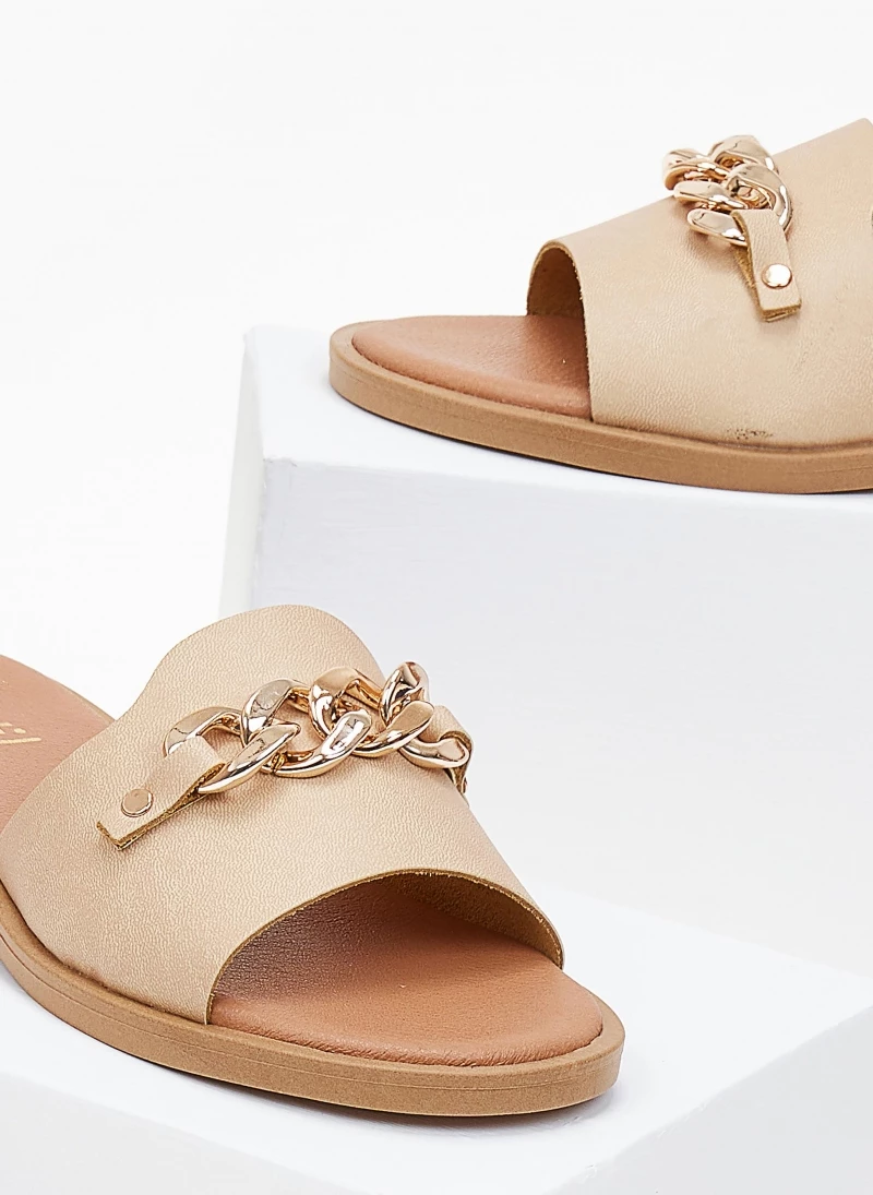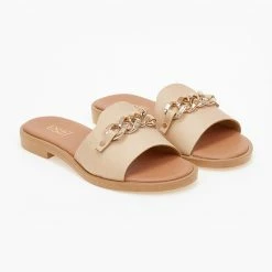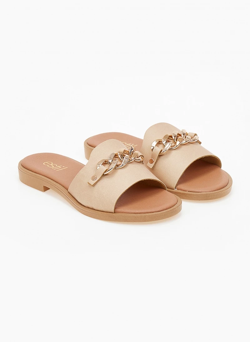 Νέος 👏 Ολοκαίνουργιο 🤩 Σανδάλια δερμάτινα Estil με αλυσίδα – Μπεζ 👍 🔔