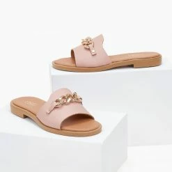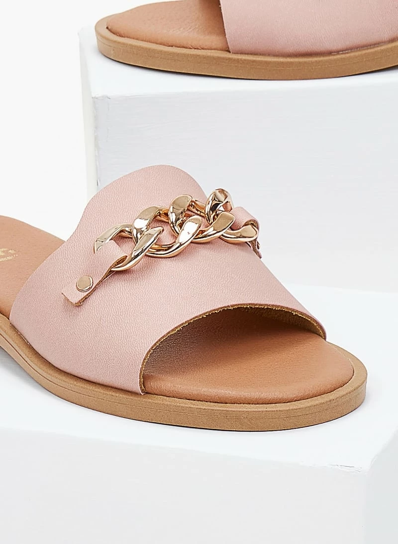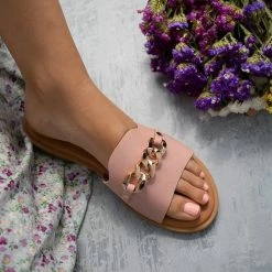 Καλύτερη πώληση ❤️ Αγορά 👏 Σανδάλια δερμάτινα Estil με αλυσίδα – Nude ⭐ 🌟