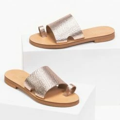 Ολοκαίνουργιο 😉 Καλύτερες κριτικές για 😉 Σανδάλια δερμάτινα Estil με ανάγλυφο Snakeprint – Χαλκός 🛒 🛒