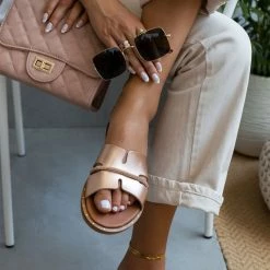Best Pirce ✔️ Προϋπολογισμός 👍 Πέδιλα TFP Flat δερμάτινα με χιαστί δέσιμο – Χαλκός 👏 ⭐