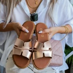 Φτηνός 🧨 Κουπόνι 👏 Σανδάλια δερμάτινα ESTIL με ανοίγματα και Strass – Χαλκός 🔔 ❤️