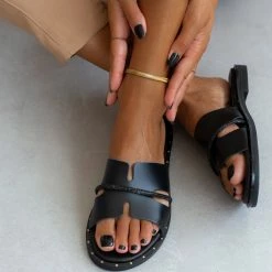 Κουπόνι 🎁 Αγορά 🤩 Σανδάλια δερμάτινα ESTIL με ανοίγματα και Strass – Μαύρο 🔥 ✨