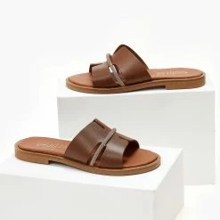 Το φθηνότερο 😉 Συμφωνίες 👍 Πέδιλα TFP Flat δερμάτινα με χιαστί δέσιμο – Ταμπά 🌟 🥰
