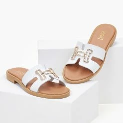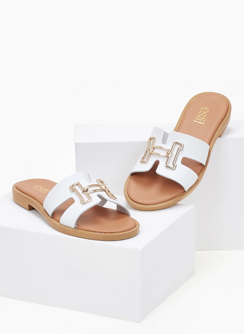 Εξοδος 👏 ΧΟΝΔΡΙΚΟ ΕΜΠΟΡΙΟ 🌟 Σανδάλια δερμάτινα Estil με ανοίγματα – Λευκό ⭐ 🔥