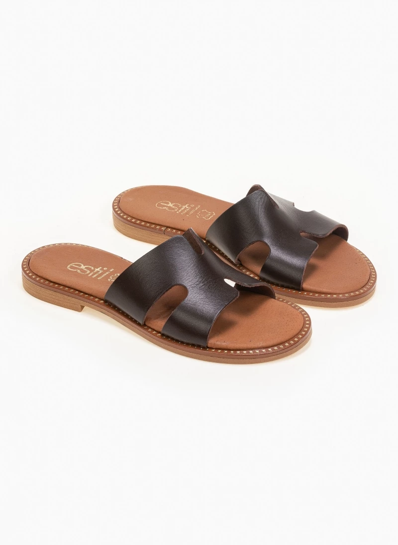 Πολύ καλή προσφορά 🤩 Flash Sale 🤩 Σανδάλια δερμάτινα Estil με ανοίγματα στη φάσα – Καφέ 🌟 👍