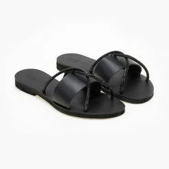 Εξοδος 🧨 Το φθηνότερο 🧨 Σανδάλια δερμάτινα ESTIL με χιαστί Strass λουράκια – Μαύρο 👍 🔥