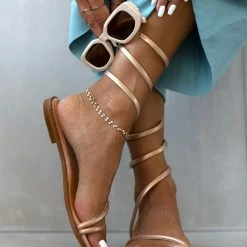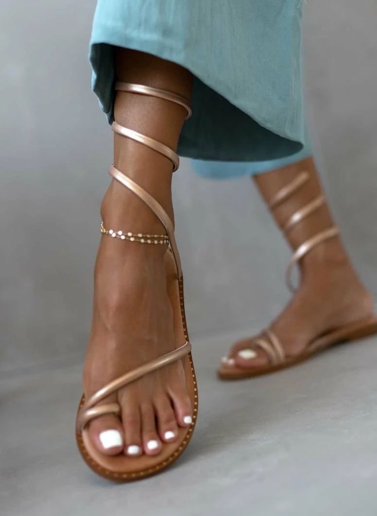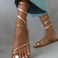 Best Pirce ✔️ Προϋπολογισμός 👍 Πέδιλα TFP Flat δερμάτινα με χιαστί δέσιμο – Χαλκός 👏 ⭐